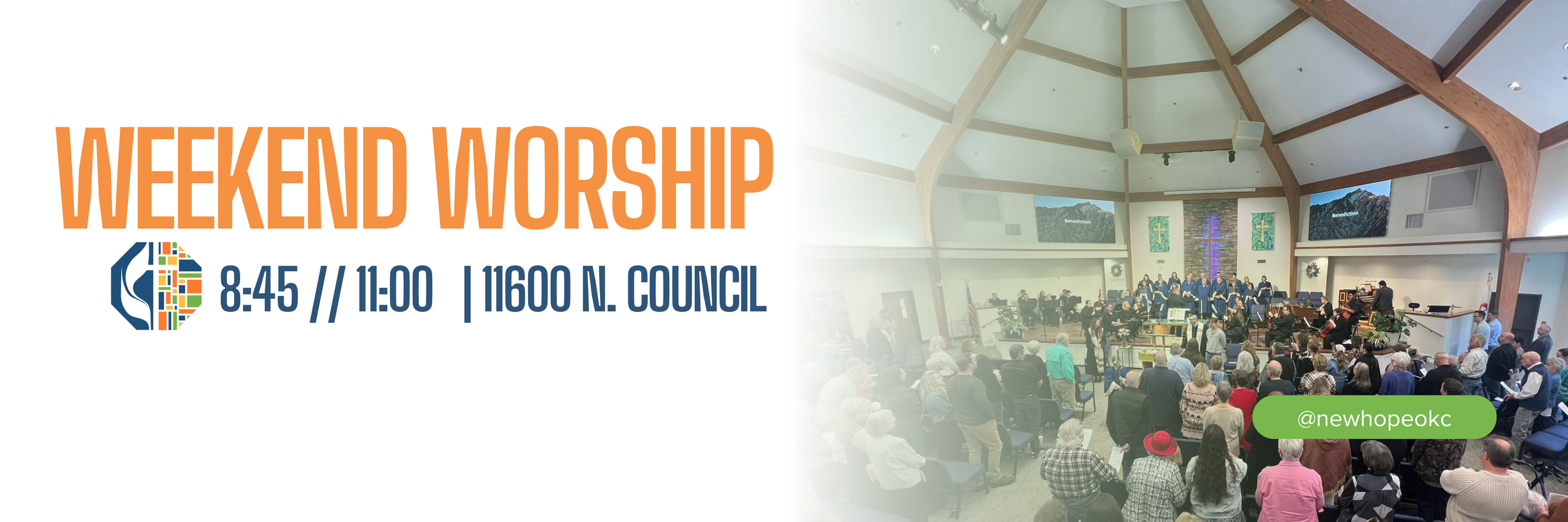 Worship with us at 8:45 or 11:00 a.m. on Sundays, or online at newhopeokc.org/live. Organ, orchestra, choirs, hand bells, kids activities , and inspiring messages.